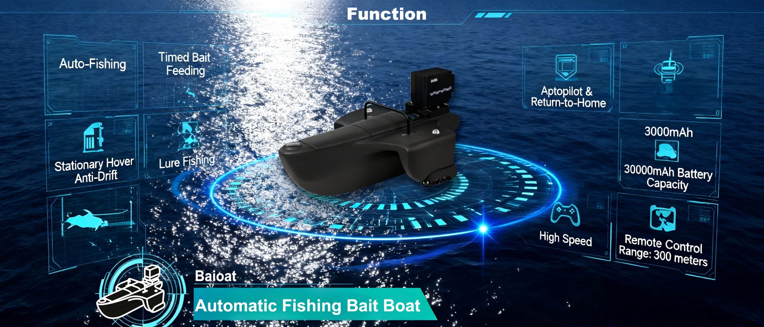 Auto-Fishing · Timed Bait Feeding · Stationary Hover Anti-Drift