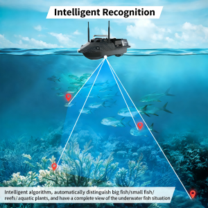 Switchable high/low speed modes, anti-tangle design, large propellers and high rotating speed. - Built-in Sonar Fish Finder