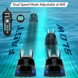 Supports forward, backward, left turn, right turn with flexible operation for various water environments. Built-in high-precision gyroscope automatically corrects yaw for stable sailing. - Constant Speed & Fixed-Point Cruise
