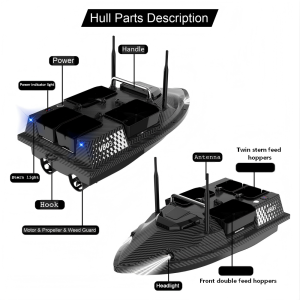 Four independently controlled hoppers allow precise bait delivery to meet different fishing needs. - Dual Gain Antenna for Long-Range Remote Control